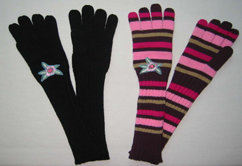 Knitted long glove with embroidery on back
